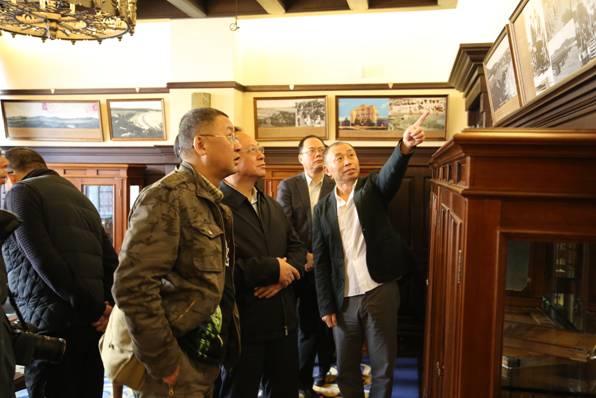 11月21日上午,建川博物館樊建川先生一行,與青島市委常委、宣傳部長(zhǎng)胡紹軍等領(lǐng)導(dǎo)同志一起來(lái)到位于南海路23號(hào)的集團(tuán)公司總部(海濱旅館舊址)參觀訪(fǎng)問(wèn)。雖然已經(jīng)是國(guó)內(nèi)博物館和收藏界鼎鼎大名的人物,但樊建川先生依然被這棟建筑的底蘊(yùn)所打動(dòng),從外觀到內(nèi)部,從輪廓到細(xì)節(jié),認(rèn)真地品味這棟百年建筑。還饒有興致地與集團(tuán)公司董事長(zhǎng)孔少武先生探討回旋樓梯如何實(shí)現(xiàn)了結(jié)構(gòu)承載與工藝美感的完美結(jié)合。樊建川先生表示:這棟建筑歷經(jīng)百年能夠保存下來(lái)實(shí)屬不易,而今天在青島城市建設(shè)集團(tuán)的手中能夠得到如此細(xì)致用心的保護(hù)修繕,則更加難能可貴。