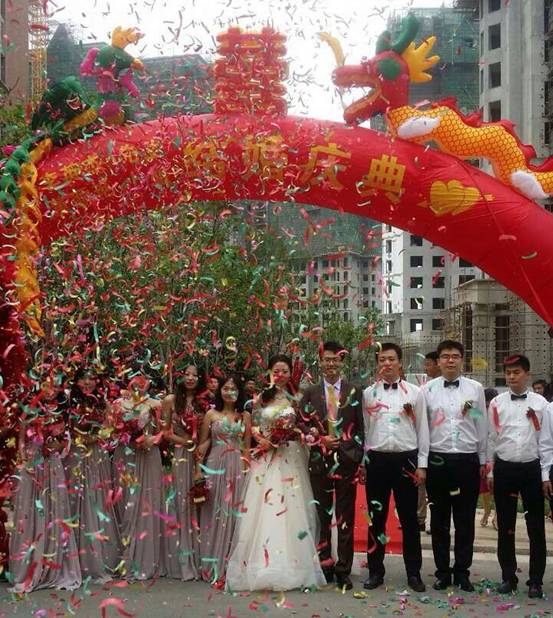 7月2日7點58分,伴隨著熱鬧的鞭炮和祝福鑼鼓,一隊嶄新奪目的喜車緩緩駛進青島印象•山小區(qū)入口,物業(yè)客服管家及服務(wù)團隊在兩側(cè)列隊敬禮歡迎喜車,并有專人用拍立得為新郎新娘拍攝一次成像的照片贈送給新人,共同祝福青島印象•山業(yè)主李先生和太太喜結(jié)連理。這也是青島印象•山項目一期自6月30日交付以來的迎來的首場婚禮。