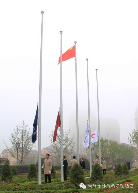 儀式首先由青島城市建設集團海景花園酒店管理公司的楊睿代表建設者升起五星紅旗,伴隨著五面旗幟高高升起中拉開序幕,象征著我們的酒店將在青島金沙灘這片熱土開啟新的篇章,為這美好的景色增彩。