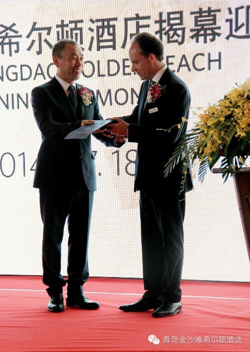 青島城市建設集團董事長孔少武先生將象征責任與信任的鑰匙轉交給酒店總經(jīng)理馬庫斯•德比爾先生,鑰匙交接,象征著作為業(yè)主公司的青島城市建設集團鄭重將青島金沙灘希爾頓酒店的經(jīng)營管理交給希爾頓集團,這是一份信賴更是一份重托!
