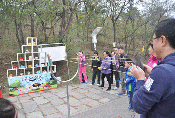 考慮到本次登山活動都是以家庭為單位報名參加,為照顧老人和兒童,本次活動并沒有進行常規(guī)的“計時賽”,而是在比賽途中準備了四個游戲環(huán)節(jié):歡樂的套圈比賽、時尚的憤怒小鳥、激烈的跳繩對抗賽、還有充滿歡樂的“你來比賽我來猜”,讓家庭中的每一個人都參與進來。