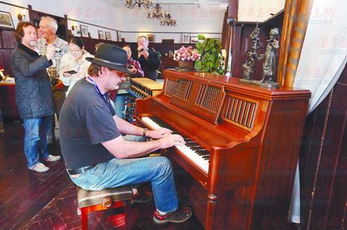 一位德國來賓即興彈奏中山路1號里的一架老鋼琴。