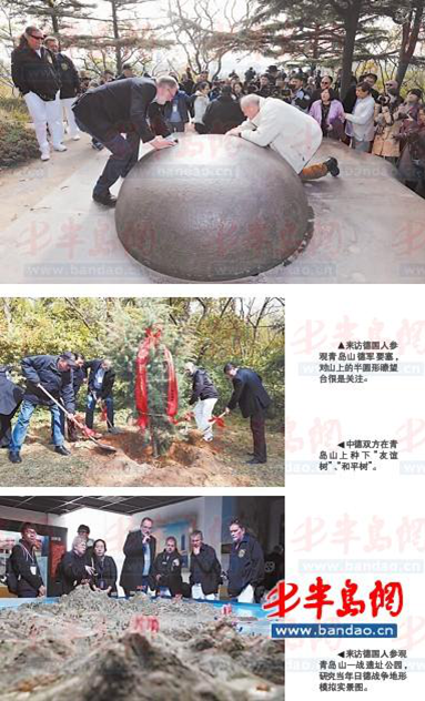 “站在這里,我仿佛看到100年前的那場德日戰(zhàn)爭,我特別感恩如今的和平景象。”11月7日上午,站在第一次世界大戰(zhàn)亞洲戰(zhàn)場遺址公園內(nèi),德國友人PeterSchmidt感慨道。當(dāng)天,德國友好訪問團來到一戰(zhàn)遺址公園進行參觀,中德雙方共同在青島山上栽下“和平樹”和“友誼樹”,祈愿和平。據(jù)悉,中德雙方將在青島歷史研究方面進行合作,共享歷史資料還原那段歷史。