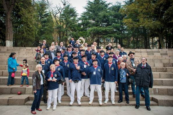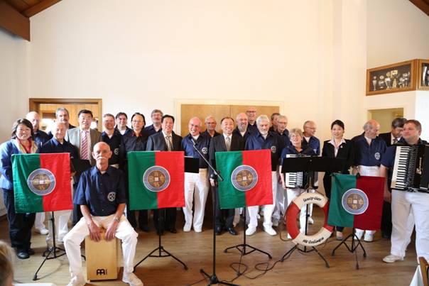 訪問團(tuán)隨后參觀了位于中國海洋大學(xué)魚山校區(qū)內(nèi)的俾斯麥兵營舊址,來訪者大部分人的祖輩當(dāng)年在俾斯麥兵營當(dāng)兵,當(dāng)年這些士兵是在1914年以前來到青島,駐扎在俾斯麥軍營。看到祖輩們曾經(jīng)生活過的地方,訪問團(tuán)成員們百感交集。施密特是德國老兵第二代后裔,77歲的他和兒子此次一起來到青島,施密特稱自己的父親曾在1900年來青參與修建總督府、海軍基地,在青島一呆就是六年。“我很高興的是,今天來到青島,看到有些建筑還是相冊里的樣子。這些建筑能保持當(dāng)年的原貌沒有被破壞,讓我感到很興奮。德國在二戰(zhàn)期間舊建筑被損壞,現(xiàn)在花大量人力物力修葺,是一件很遺憾的事,我希望青島能把這些古建筑保留下去”,施密特說。在俾斯麥兵營舊址前的花園里,“中國青島”合唱團(tuán)還集體演唱了一首《水手之歌》,這個合唱團(tuán)成立于1911年,活動基地位于德國的埃斯林根市,合唱團(tuán)最初正是由一些上世紀(jì)初曾經(jīng)到訪過青島的水手,再返回故鄉(xiāng)后,時常懷念起在這個東方國度海濱之城的時光,于是聚合組織成立了名為“中國青島”的水手合唱團(tuán)。他們的標(biāo)識上也赫然印著“中國青島”四個漢字,一百多年來沒有改變。一百多年來他們用歌唱延續(xù)著與青島的淵源。