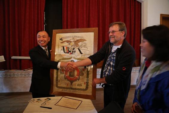 11月7日下午,“ 一戰(zhàn)百年,祈愿和平——德國老兵后裔青島尋蹤”中德友好主題交流會在南海路23號海濱旅館舊址舉行。訪問團(tuán)與青島城市建設(shè)文化交流協(xié)會、文化團(tuán)體、專家學(xué)者等濟(jì)濟(jì)一堂,共話和平與友誼的主題。青島城市建設(shè)文化交流協(xié)會名譽(yù)會長胡紹軍等出席會議并致辭。海濱旅館郵票珍藏冊也在本次會上首次公開發(fā)行,并作為珍貴禮物贈與德國友人。青島市政府也將一套介紹青島過去、現(xiàn)在和未來規(guī)劃的光盤和照片贈送給訪問團(tuán),希望這些記載著青島過去、現(xiàn)在和未來的資料能夠被德國人知曉,希望更多的德國人知道青島。