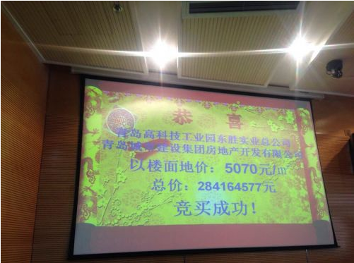 1月27日,青島浮山新區(qū)黃金地塊在青島市公共資源交易大廳舉行拍賣,該地塊位于浮山后同安路以北,勁松五路以東,占地面積24368.8平方米,規(guī)劃面積56048.24平方米。最終由青島城市建設(shè)集團(tuán)房地產(chǎn)開(kāi)發(fā)有限公司與青島高科技工業(yè)園東盛實(shí)業(yè)總公司聯(lián)合競(jìng)得。