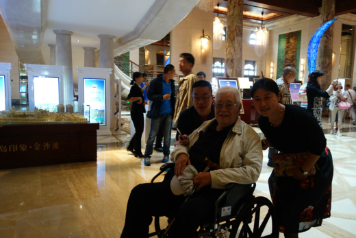 學(xué)會(huì)名譽(yù)會(huì)長于洋老師一下車,就受到了酒店方無微不至的照顧,他對(duì)酒店的服務(wù)非常滿意,同時(shí)提出我們酒店提供的輪椅特別適合他。接到這個(gè)信息,集團(tuán)現(xiàn)場工作小組和酒店臨時(shí)決定,將于洋老師喜歡的這個(gè)輪椅贈(zèng)送給他,也表示了我們對(duì)老一輩表演藝術(shù)家的尊重,希望他們身體健康、快樂長壽。