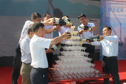 威海城合置業(yè)副總經(jīng)理段紅波宣布了半島印象營(yíng)銷中心盛大開(kāi)放,并與各方貴賓共同開(kāi)啟了香檳塔儀式。時(shí)值中秋佳節(jié),大家還共同為一塊直徑80厘米的超級(jí)月餅剪彩,為半島印象入市送上美好祝愿,也為威海人民送去中秋的誠(chéng)摯祝福。