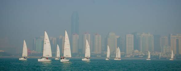 10月22日上午,在剛剛結(jié)束了2013國際帆聯(lián)世界杯帆船賽青島站比賽的青島奧帆中心,又迎來了“青島印象 杯”帆船比賽,來自全國14個城市、15支業(yè)余參賽隊伍在此展開競技。當(dāng)日,比賽海域天氣晴朗,風(fēng)向、風(fēng)力以及水文等條件都非常適合近海比賽。上午9:30,隨著裁判員的鳴笛,比賽正式開始,雖然不是百舸爭流,但15支隊伍各顯神通,裝飾著青島印象logo以及“容得下世界放不下青島” 畫面的帆船在比賽航線上競相逐鹿,海面上帆影點點,藍天、碧海、白帆和激情的選手,配成一幅美麗的圖畫!經(jīng)過近兩個小時的角逐,來自南京和沈陽的聯(lián)合代表隊獲得比賽冠軍。