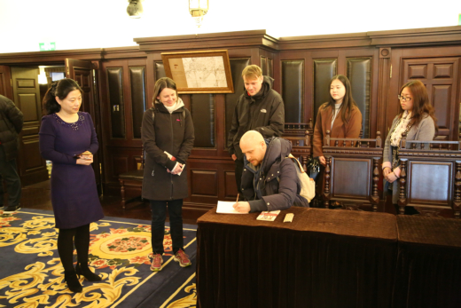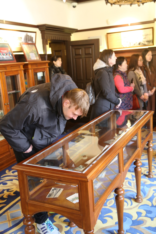 藝術(shù)家們參觀考察了這棟始建于1903年的德式建筑和青島印象博物館,他們對博物館中陳列的多件歷史文物產(chǎn)生深厚興趣,不時駐足觀看,詳細(xì)詢問有關(guān)內(nèi)容并不時與文化交流協(xié)會的成員認(rèn)真交流溝通,對青島城市建設(shè)文化交流協(xié)會和青島城市建設(shè)集團這種尊重歷史的態(tài)度表示欽佩、對為保護優(yōu)秀歷史文化所作出的各種努力表示贊嘆。感慨之余,德國藝術(shù)家在留言簿上提筆寫到:非常感謝受邀參加中德文化交流活動,你們的成功不僅在于保護了優(yōu)秀的歷史建筑,更重要的是對其利用和發(fā)揮作用。我們?yōu)槟銈兏械绞肿院馈槲磥砀杀?/span>