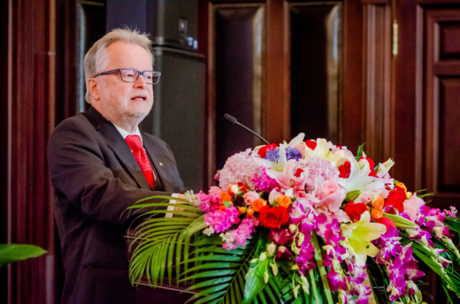 上海市城市規(guī)劃設(shè)計研究院城市設(shè)計研究中心設(shè)計總監(jiān)、德國斯圖加特大學(xué)工程學(xué)博士、青島市南政協(xié)人文歷史研究會理事金山先生做了“阿爾弗萊德•希姆森與青島里院建筑”的專題演講。