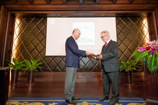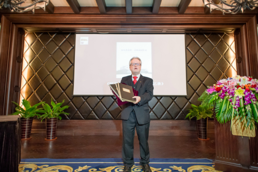 青島市委常委、宣傳部長惠新安,青島市政協(xié)副主席、青島城市建設(shè)文化交流協(xié)會名譽會長郄晉生,青島城市建設(shè)文化交流協(xié)會會長孔少武和赫爾穆特•希姆斯•希姆森共同為新書揭幕。作為阿爾弗萊德•希姆森的嫡孫,赫爾穆特•希姆斯•希姆森專程從德國波恩趕到青島,他在致辭中向青島市政府和青島城市建設(shè)文化交流協(xié)會為回憶錄中文版的出版所付出的努力表示由衷的感謝,并向青島城市建設(shè)文化交流協(xié)會贈送了他祖父所撰寫的回憶錄的手稿,手稿將作為珍貴的中德文化交流的見證收藏于青島印象博物館。