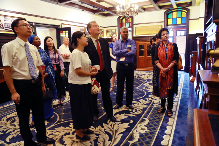 7月10日上午,來青島參加2017年國際教育信息化大會的聯(lián)合國教科文組織執(zhí)行局主席沃布斯先生攜多位參會外賓在市教育局副局長姜元韶的陪同下考察了青島印象博物館,詳細了解了青島城市文化建筑史的發(fā)展歷程。