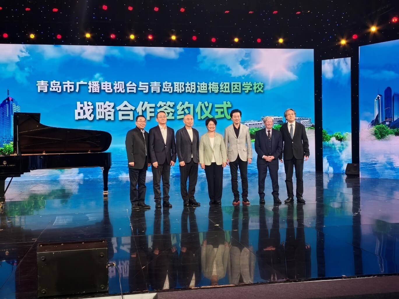 7月9日下午,青島耶胡迪梅紐因?qū)W校與青島市廣播電視臺(tái)戰(zhàn)略合作簽訂儀式在青島市廣播電視臺(tái)演播大廳隆重舉行。